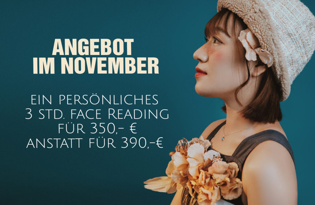 Angebot vom 28.10. bis zum 24.11. – Ein persönliches dreistündiges Face Reading für nur 350,- € anstatt 390,- €!